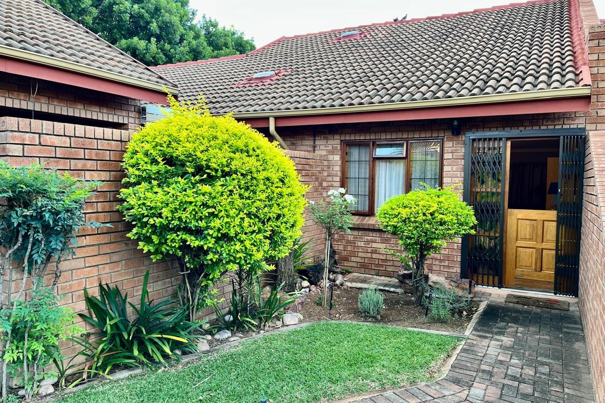Serene gated living in Palmeira estate, Bela Bela, on a quiet corner bordering a green strip — private landscaped backyard overlooking the strip, open-plan living, study/gym; three bedrooms, two bathrooms.