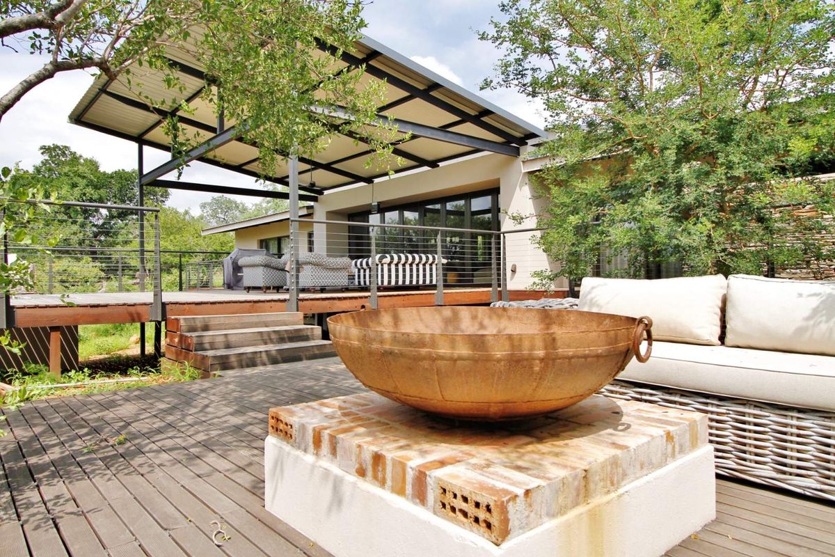 Experience the ultimate bushveld lifestyle in this beautifully designed 4-bedroom home, perfectly positioned within the exclusive Zandspruit Bush & Aero Estate. Thoughtfully built to embrace its natural surroundings, the home features expansive windows, sliding doors throughout, and wrap-around wooden decks that seamlessly connect indoor and outdoor living.