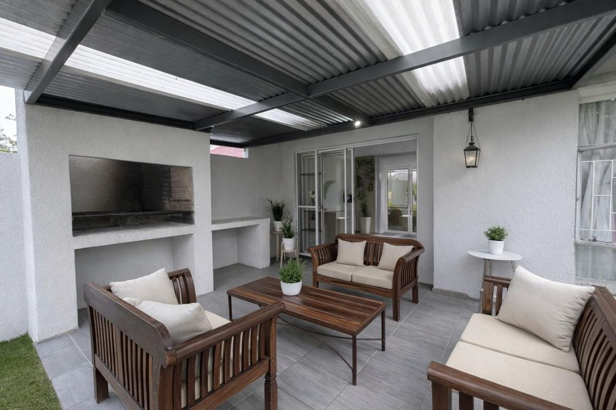 Low-maintenance lock-up-and-go living in a secure, quiet complex — perfect for professionals or small families, with a covered patio and built-in braai, three bedrooms, 2.5 bathrooms and carport.