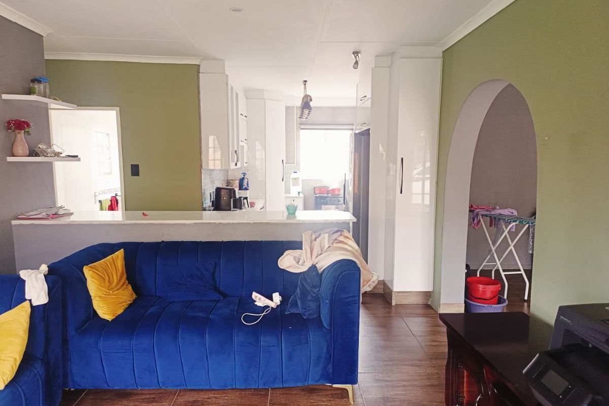 Convenient family living near Pick n Pay, schools and transport in Reyno Ridge; gated complex with generous enclosed yard, scullery and versatile extra room—three bedrooms, two bathrooms.
