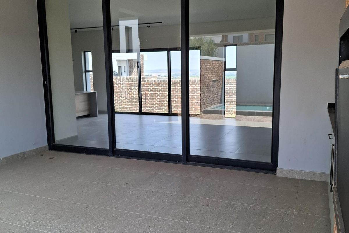 Welcome to this exquisite, newly built 3-bedroom home with in house garden, offering the perfect balance of elegance, comfort, and modern convenience. Designed with attention to detail, this upmarket residence is ideal for tenants seeking a stylish and secure lifestyle in a premium location. Each of the three bedrooms includes its own modern en-suite bathroom, providing ultimate privacy and luxury. The open-plan kitchen and living area showcase high-end finishes and seamless flow onto a covered patio with a built-in braai — perfect for effortless indoor-outdoor living and entertaining. Enjoy the sparkling swimming pool and beautifully finished outdoor area — ideal for relaxing and hosting guests. The home also features solar panels and an inverter system, ensuring energy efficiency and uninterrupted power. Property Features: 3 Bedrooms – all with en-suite bathrooms Open-plan kitchen and lounge with premium finishes Covered patio with built-in braai Swimming pool Solar panels & inverter system Brand new, modern, and upmarket No Smoking No Pets This pristine home offers sophisticated living with a touch of luxury — perfect for professionals or couples who value quality, style, and peace of mind.