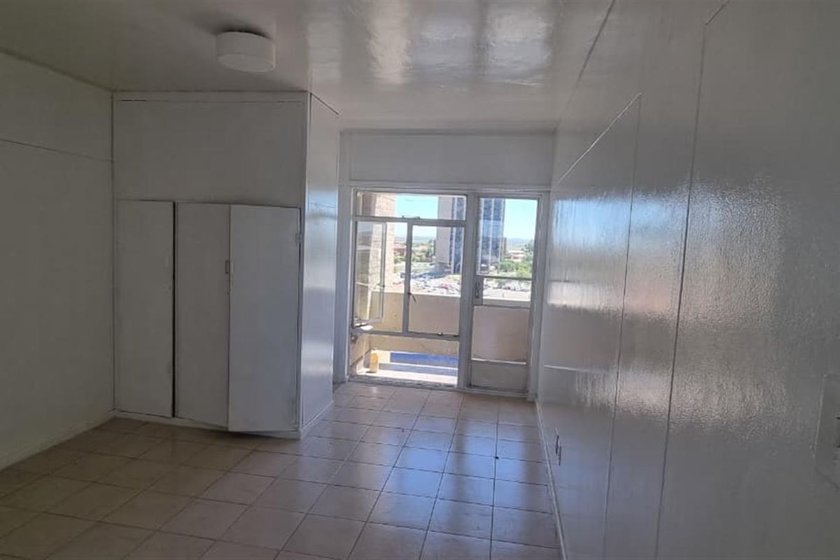 City-center living for young professionals in a secure CBD complex—studio with private balcony and separate kitchen, built-in cupboards, tiled floors and prepaid electricity; one bathroom.