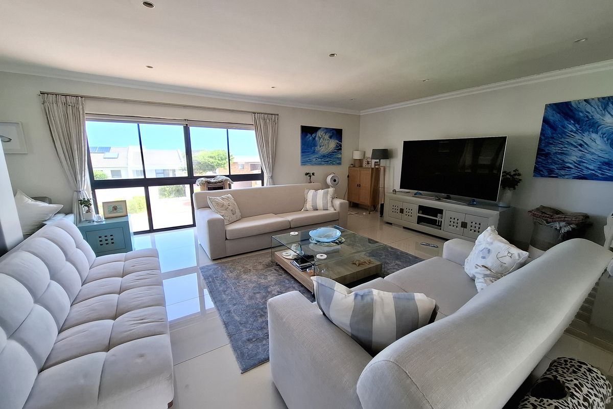 Coastal entertaining and relaxed family living in The Hill, Bloubergstrand, with open-plan flow onto a covered patio, sea and mountain views, four beds, three baths, double garage.