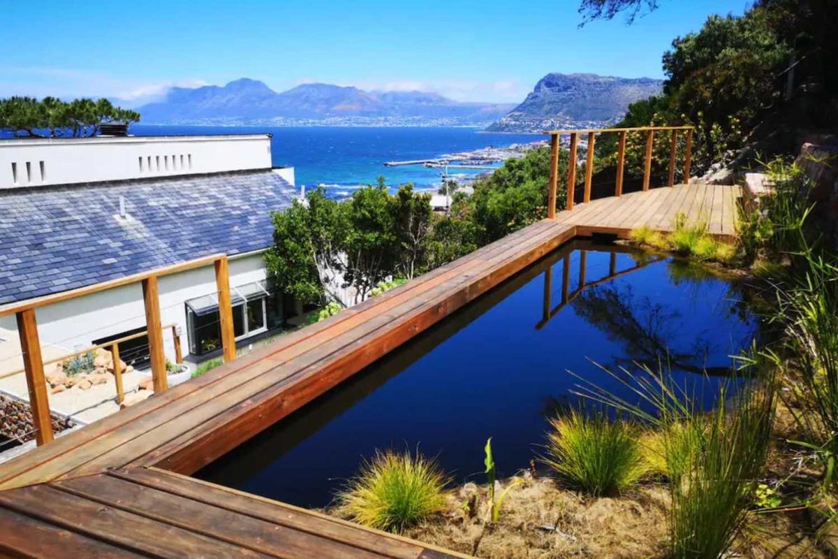 Live where the forest meets the sea in St James, a walk to Kalk Bay cafes and tidal pool — furnished four-bedroom home with natural pool, deck and sweeping ocean views.