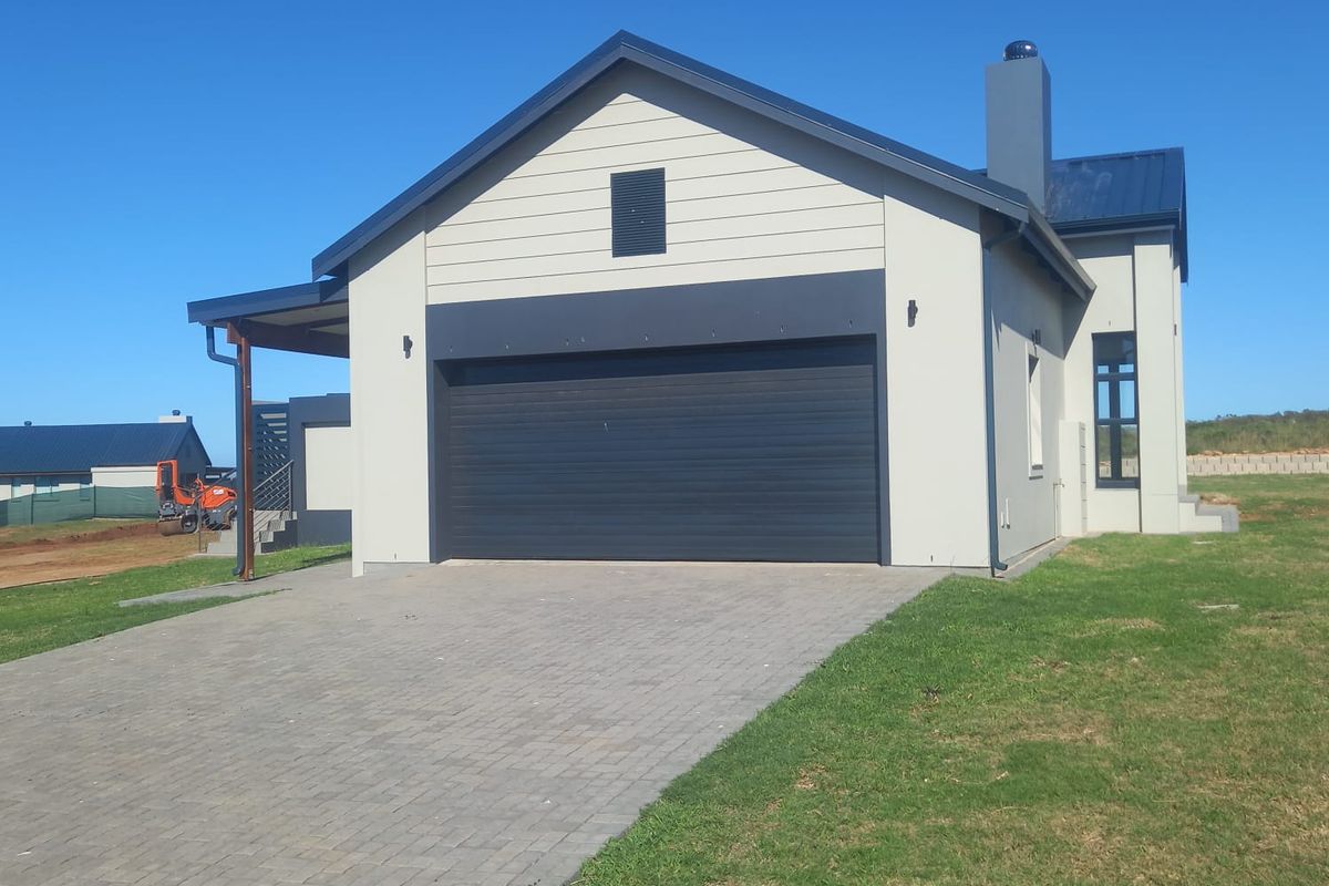 Coastal estate living in Hartland Estate with sea views and relaxed indoor-outdoor flow via stacking doors. Built-in braai, modern kitchen, three bedrooms, two bathrooms, double covered parking.