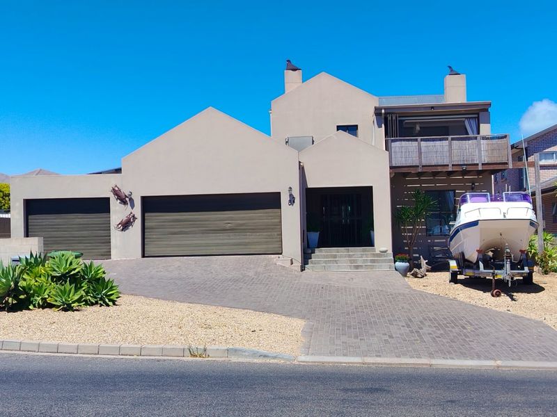 Entertainer's coastal retreat in Myburgh Park, with lagoon-view balconies and upstairs entertainment area featuring twin braais and Jetmaster fireplace, enclosed jacuzzi, pool, four bedrooms and covered parking.
