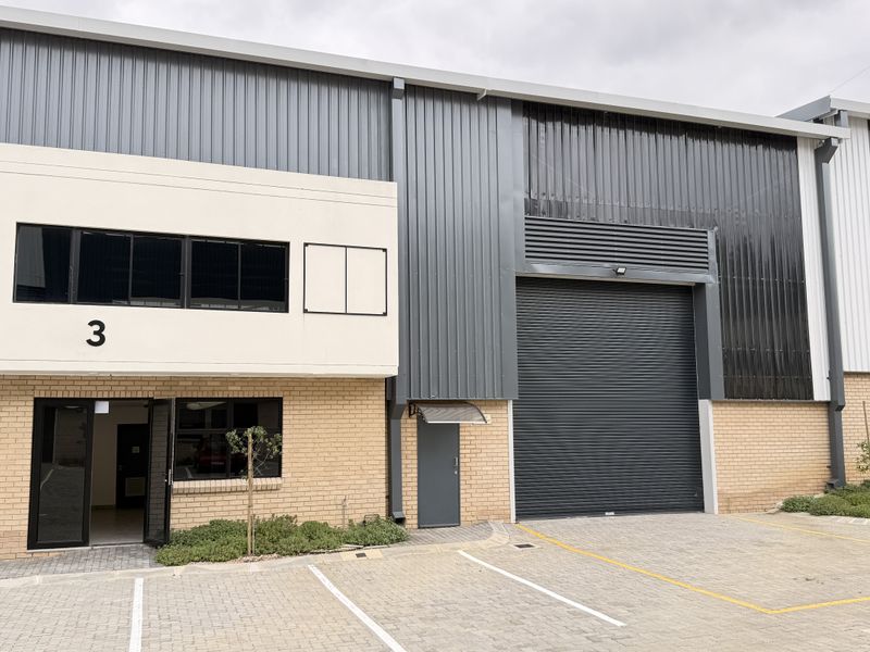 Grow your distribution hub in the Samrand corridor between Johannesburg and Pretoria — brand-new 1,057 m² warehouse with 12m internal height, 4m roller shutter and office fit-out.