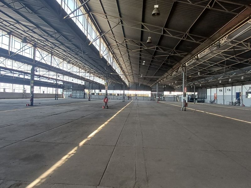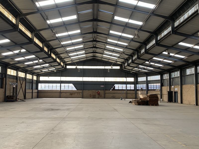 Warehouse for rent in Elandsfontein: 6180 sqm, 6 bathrooms, includes office and yard space, 64 bays.