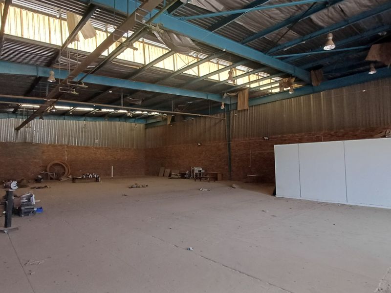 Flexible, secure industrial workspace in Meyerton Park, Gauteng — ideal for growing operations. Features 24-hour guarded access, ample natural light and small-truck loading on 1620 m².