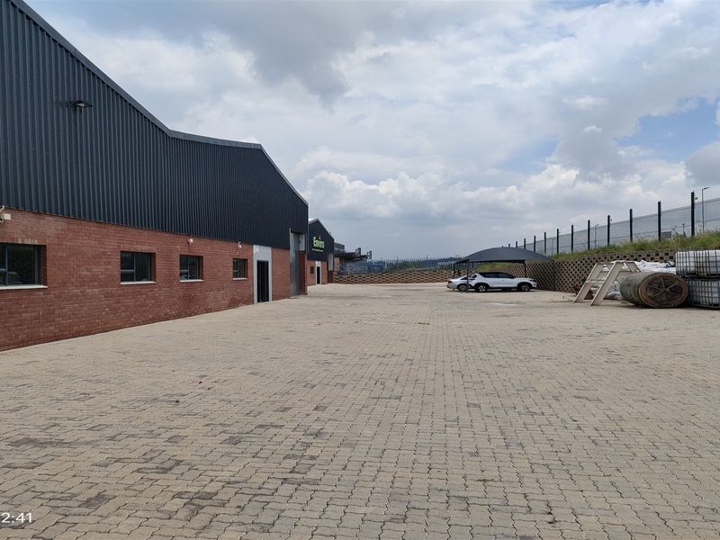 Strategic Rand access via Malibongwe, walking distance to Cosmo City Mall. Efficient 1,094 m² warehouse with abundant natural light, 160A 3-phase power and large paved yard.