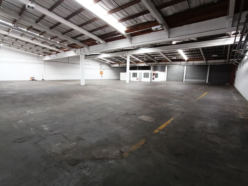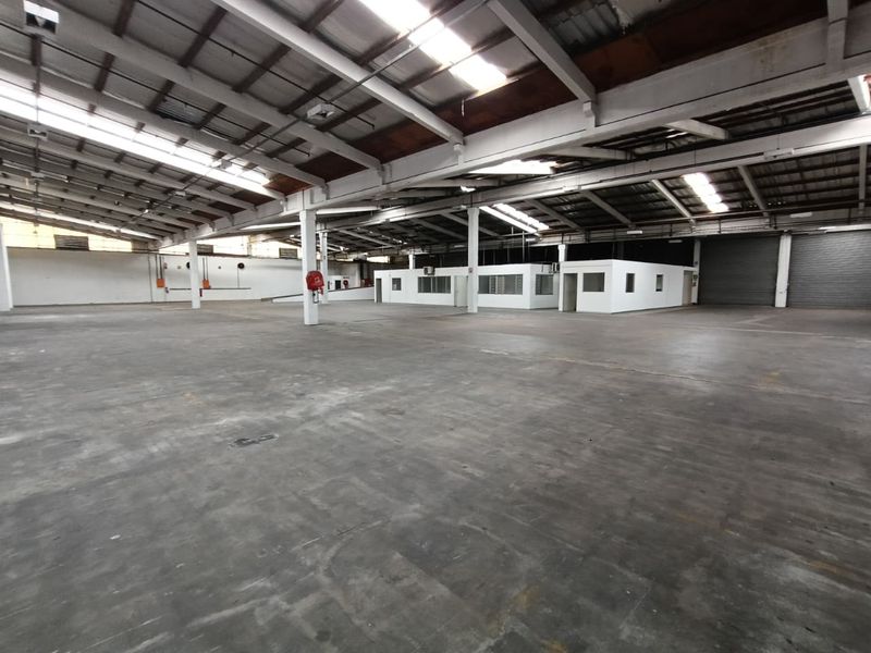 Streamlined logistics/manufacturing base close to Durban’s northern and southern industrial corridors, with five secure access points and 3-phase high-amperage power. 5,829 sqm, ample yard and large roller doors.