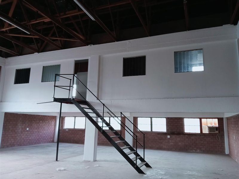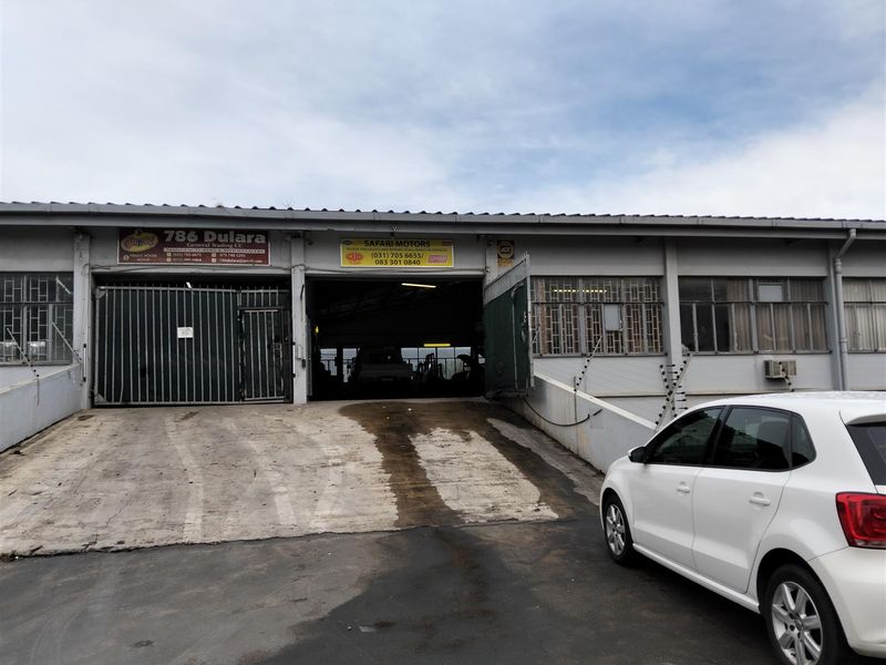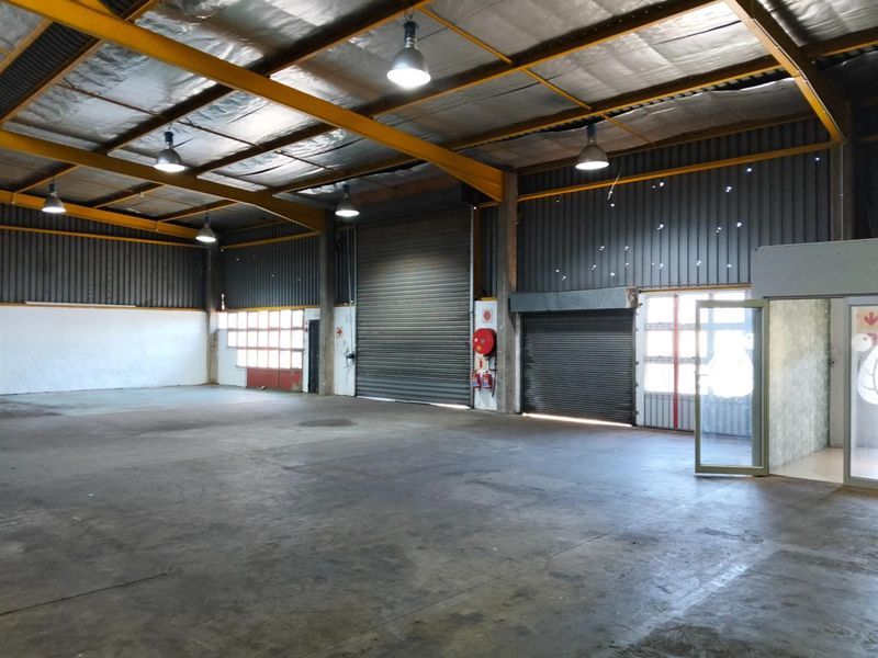 Warehouse for lease, 617m², 3-phase power ±100 amps, open plan, located in Pinetown's industrial estate.