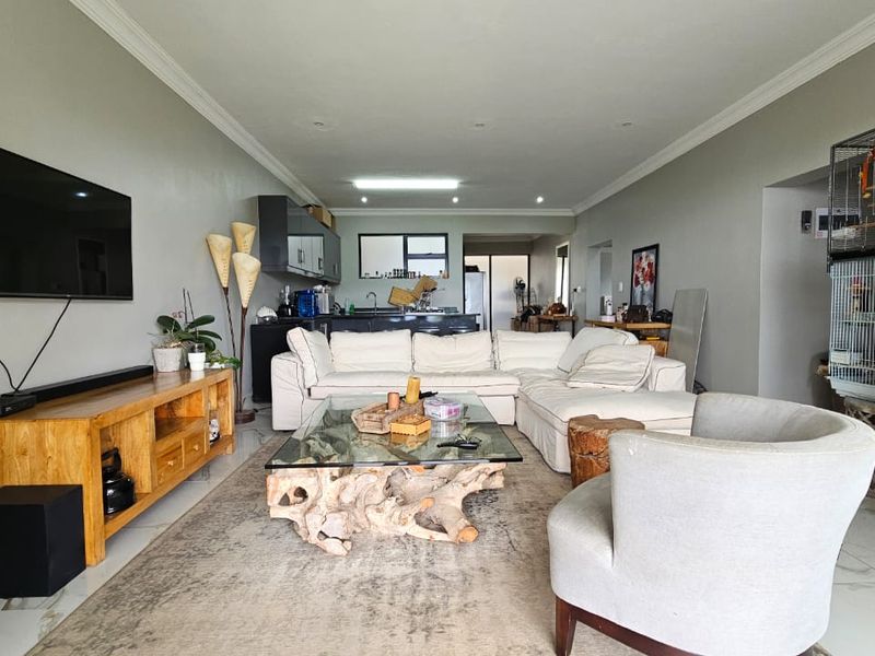 Entertain effortlessly in Durban North's Burndale Place — contemporary three-bedroom apartment with seamless open living, a large patio and braai opening to lawn and views, plus two covered parking.