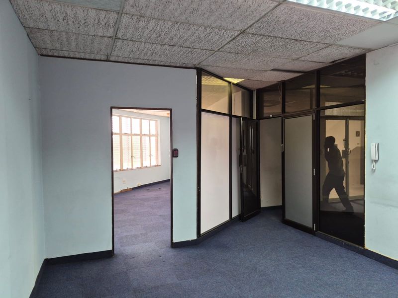 Work in Stamford Hill's vibrant business precinct, minutes from Durban CBD, in a renovated 250m² second-floor office featuring eight glass-partitioned offices and sleek porcelain-tiled interiors.