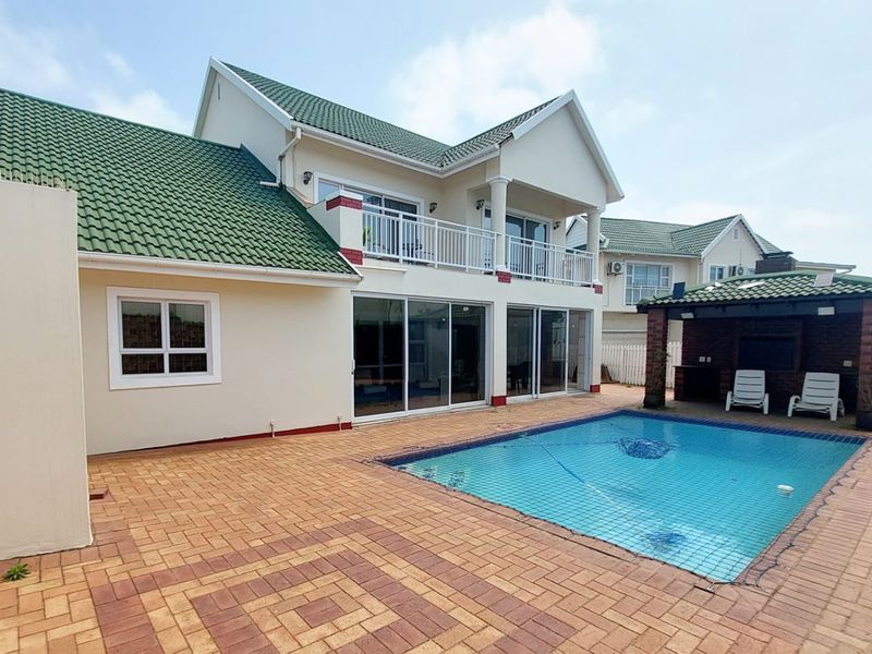 Upscale coastal living ideal for professionals, minutes from Umhlanga Village and King Shaka Airport. Enclosed patio with stack-back doors and pool; four beds, three baths, double garage.
