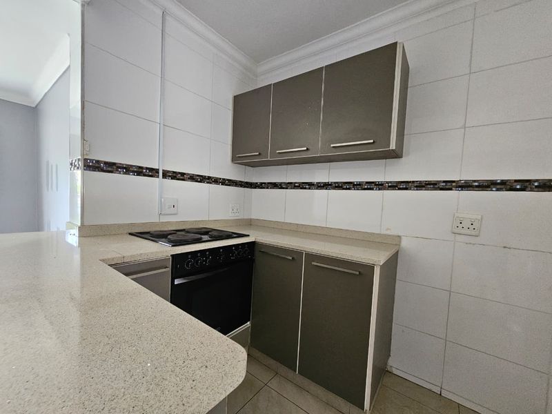 Seaside living with effortless beach access in Meerensee’s secure, popular complex — open-plan lounge and two bedrooms open via French doors to a private covered balcony; covered parking included.