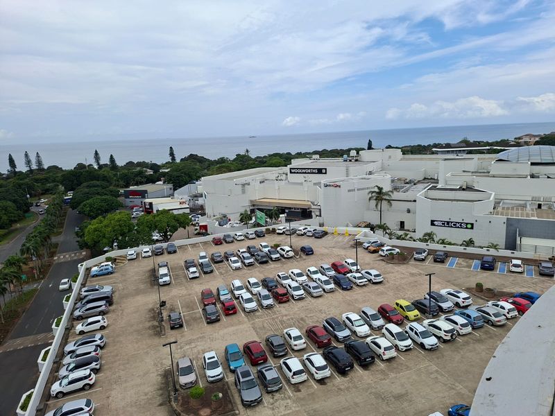 Elevated La Lucia living with direct Mall access and seamless M4 links; open-plan apartment with wrap-around balcony and sweeping ocean/inland views, two bedrooms, two baths and two basement parking.