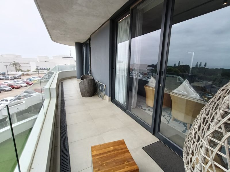 Coastal convenience and modern living in La Lucia — open-plan living flows to a spacious private balcony for entertaining. Sleek finishes, secure complex, two bedrooms, two bathrooms, two parking bays.