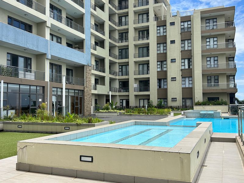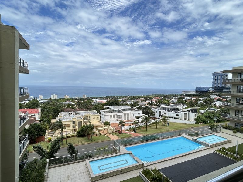 Effortless coastal living in the heart of Umhlanga Rocks with sea views, modern open-plan kitchen and American shutters — two bedrooms, two bathrooms, secure complex with pools.
