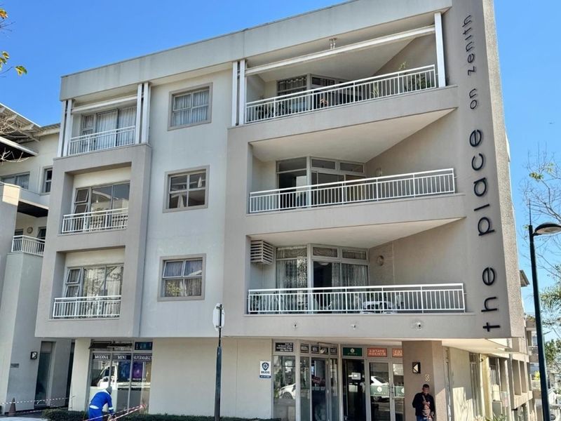 Resort-style coastal living in Umhlanga, steps from Gateway Theatre and Netcare — large balcony with sweeping views, pool and gym access; one-bedroom, one-bath with covered parking.