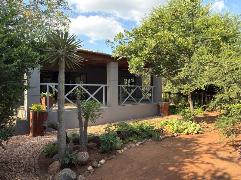 Serene bushveld retreat in Raptors View Wildlife Estate, Hoedspruit, single floor living on a 1 hectare lot with fibre broadband, walking trails, double parking; three bedrooms, two bathrooms.