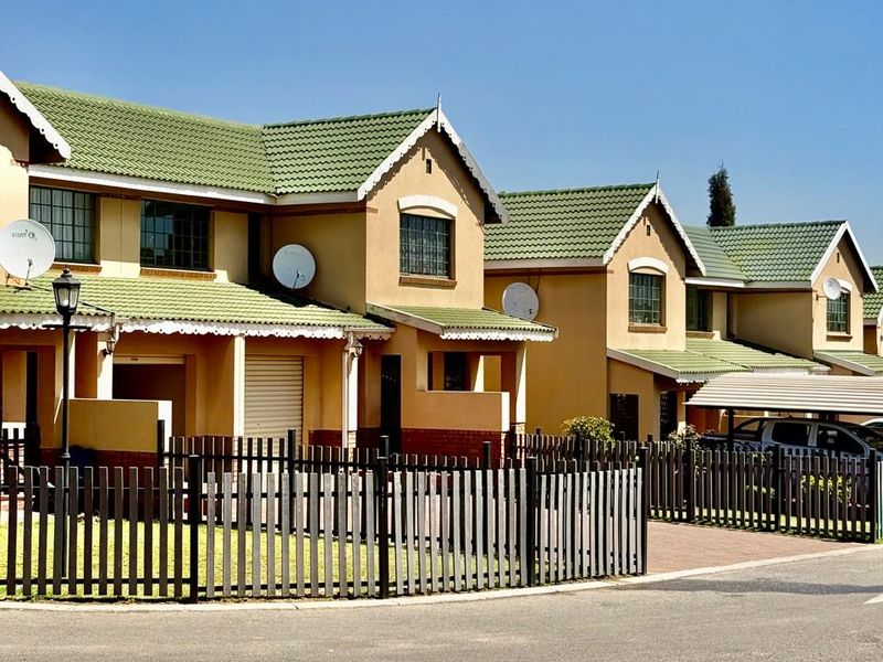 Convenient family living near Pick n Pay, schools and transport in Reyno Ridge; gated complex with generous enclosed yard, scullery and versatile extra room—three bedrooms, two bathrooms.
