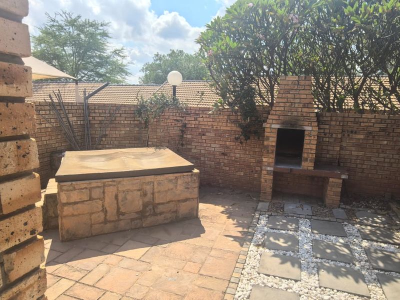 Relaxed family living in a secure complex steps from the mall, featuring a thatched entertainment area with built-in braai and jacuzzi, three beds, two baths and double garage.