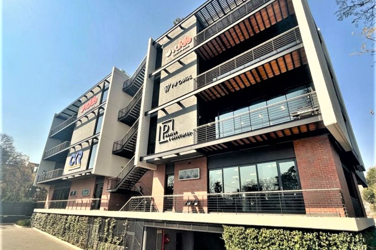 A bright and sleek 152m2 first-floor office offering a prime location on the doorstep of Rosebank and the Gautrain station. This P-grade building comes P-grade building comes with basement parking and backup power.