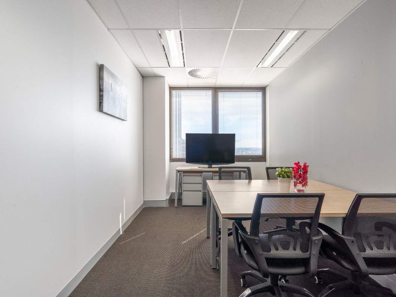 Work from Greenstone's vibrant hub, 15 minutes from the airport with Modderfontein Highway access. Furnished private office for four with a stylish business lounge and shared meeting spaces.