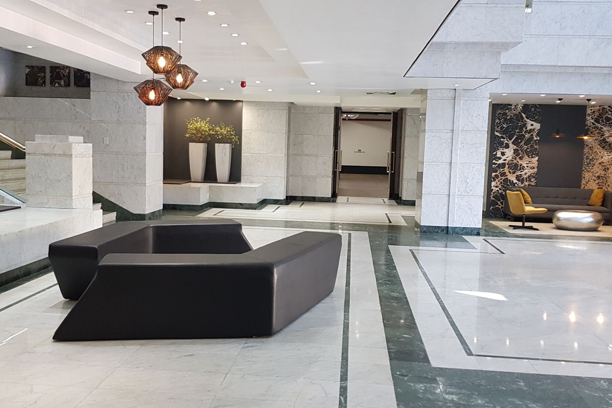 The semi-serviced offices are a mix of open-plan & separate offices with glass partitions. Entrances are well-finished & opulent. Back-up power & water on site. There is a separate conference & venue hire and a restaurant on site. The property is well-managed and have staff on site to assist with any queries. Access is manned at both entrances. Net rental is R125.00/sqm ex VAT plus rates & levies of R54.00/sqm. Parking is in basement (R824.00/bay), shade (R680.00/bay) & open bays R450.00/bay).