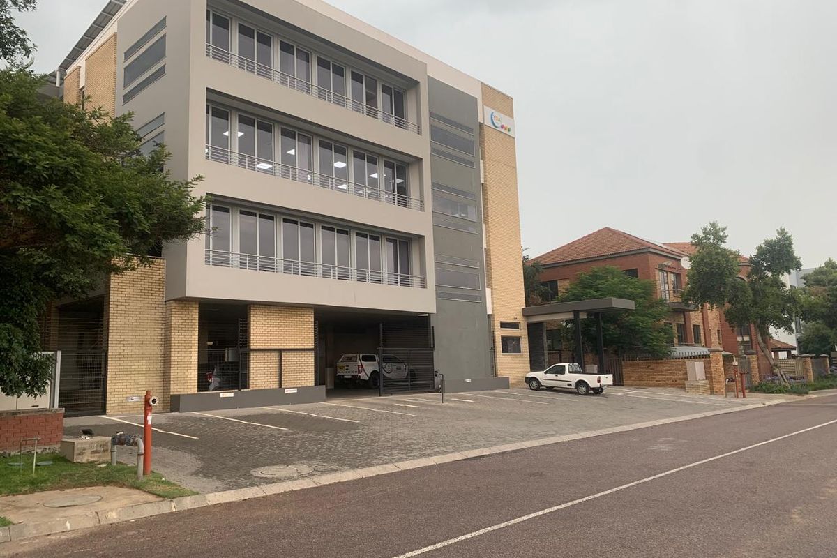 Effortless corporate living in a premier commercial node, steps from the Gautrain and New Road — fitted 191 m² office with open-plan kitchen and two bathrooms.