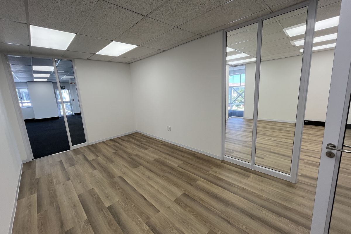 Prime commuter-friendly office opposite Nicolway Shopping Centre, offering modern finishes, reception, meeting room, open-plan workspace, private pod and two bathrooms — perks include on-site Mugg & Bean and 24/7 security.