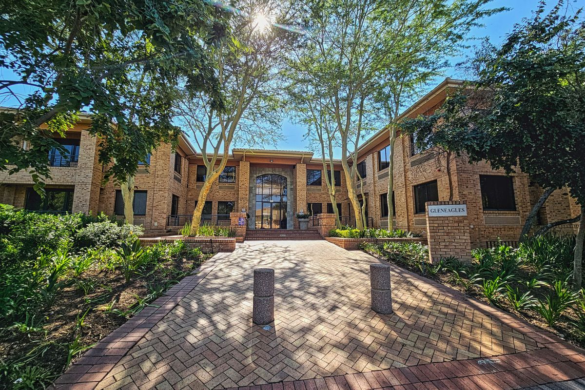 Effortless corporate hub with golf-course views and immediate access to Bryan Park Shopping Centre, gym and Woolworth's; fitted offices, backup water and generator, established gardens and negotiable parking.