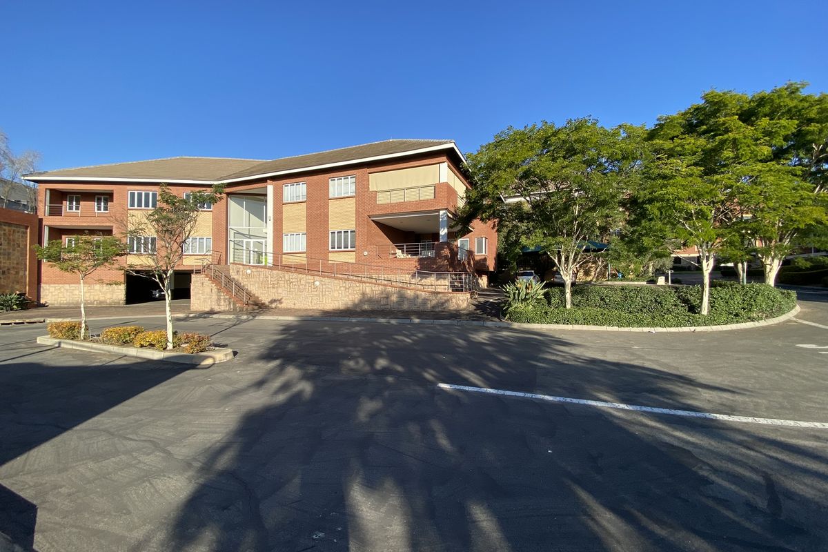 This air-conditioned ground floor suite is carpeted and fitted with a reception area, a boardroom, four offices, a storeroom and a 35m2 private deck. Ladies and gents’ bathrooms and a communal kitchen are adjacent to the suite. The building has generator backup. Open parking bays are available at R540 excluding vat per bay per month, shaded bays at R610 excluding vat per bay per month and basement bays at R710 excluding vat per bay per month. Occupation: 1 June 2025