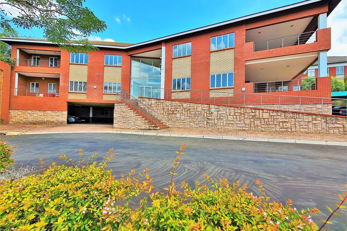 Work amid lush gardens in Waterford Office Park, Fourways — corner location with quick N1 access. Fitted ground-floor office with private patio, balcony, boardroom and two bathrooms.