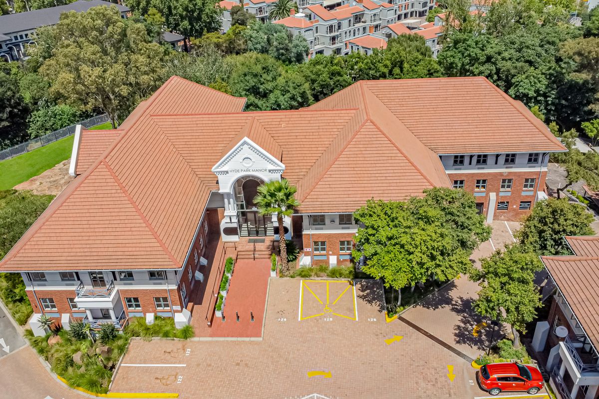 Work in a park-like setting opposite Hyde Park Corner with easy access from Jan Smuts and Winnie Mandela Drive; exclusive-use balconies and patios, four bathrooms.