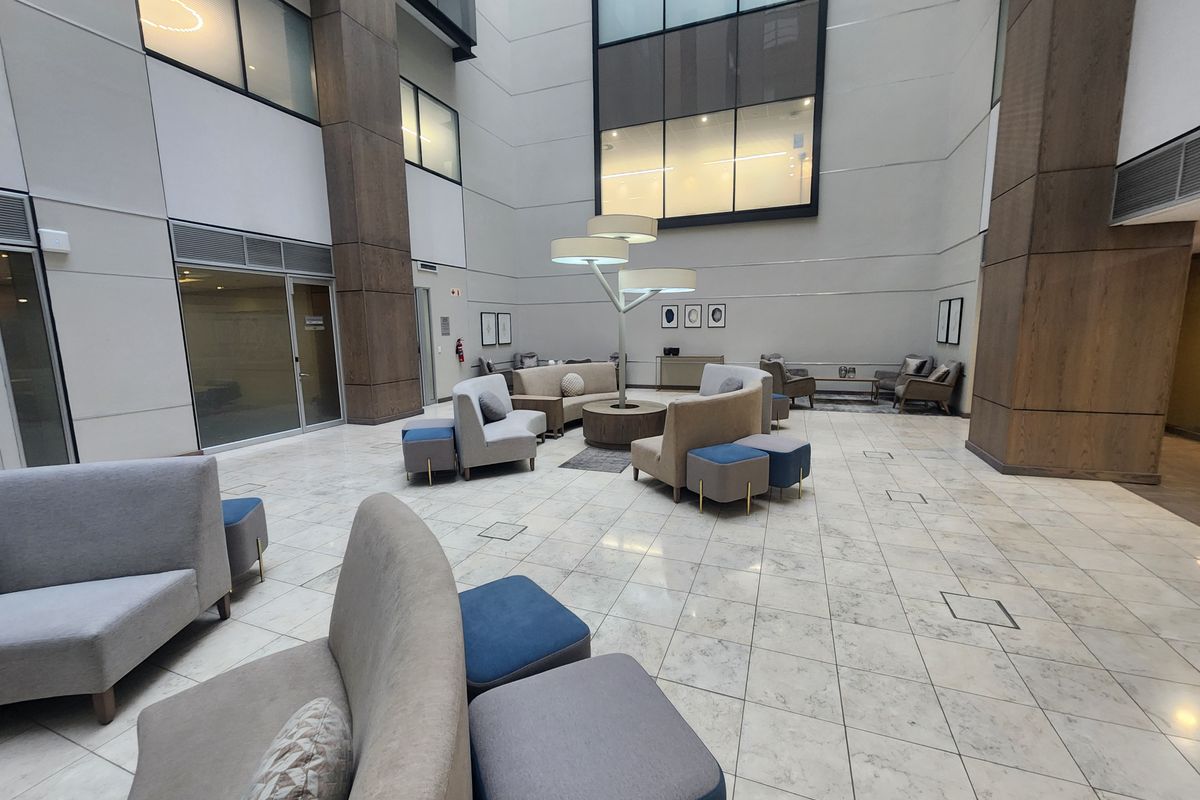 This landmark commercial property has recently undergone a comprehensive internal refurbishment, transforming the space into a modern, premium-grade working environment. The upgraded foyer and common areas feature contemporary finishes and elegant soft furnishings, creating a polished and welcoming first impression for clients and tenants alike.