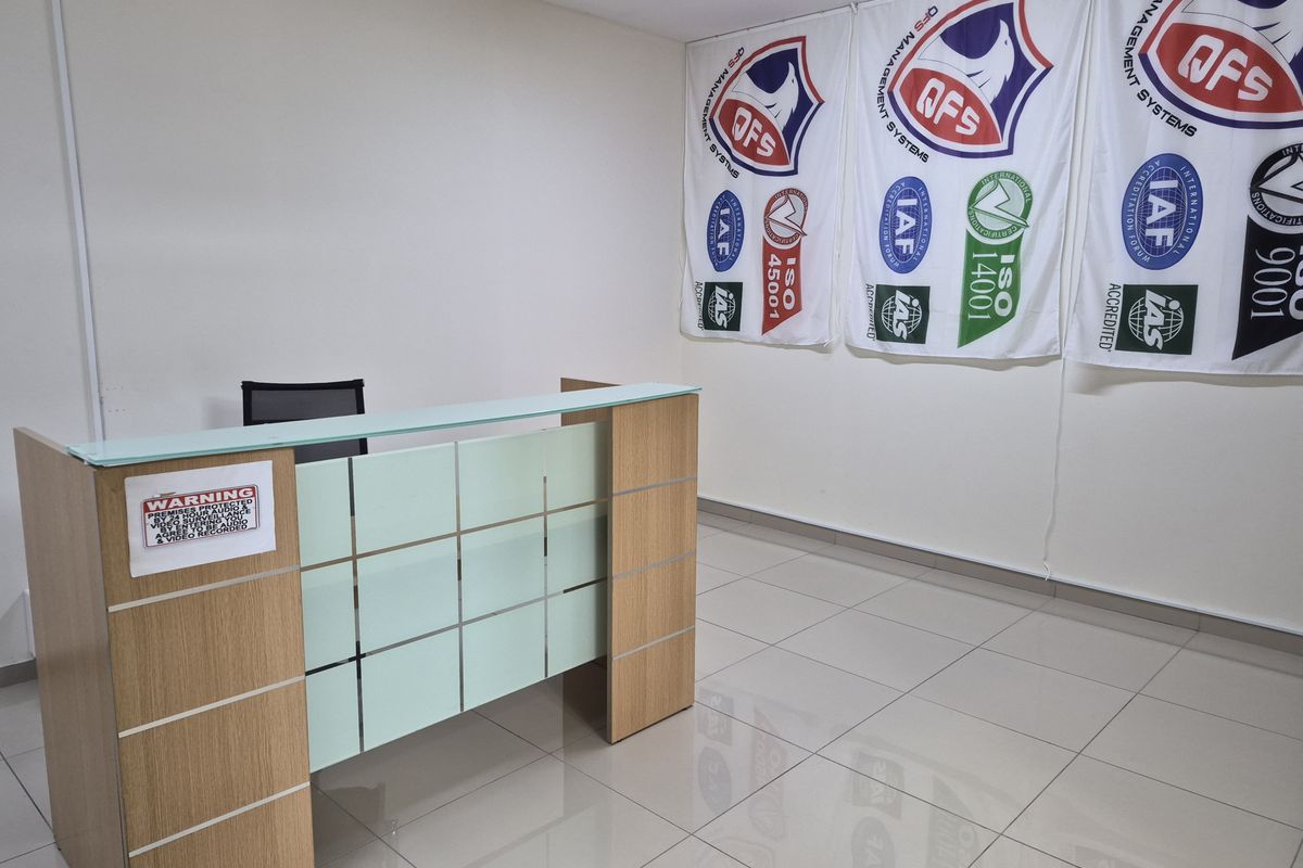 Featuring sleek porcelain tiled flooring and seamless glass-partitioned offices, the space delivers a clean, professional and sophisticated workspace.