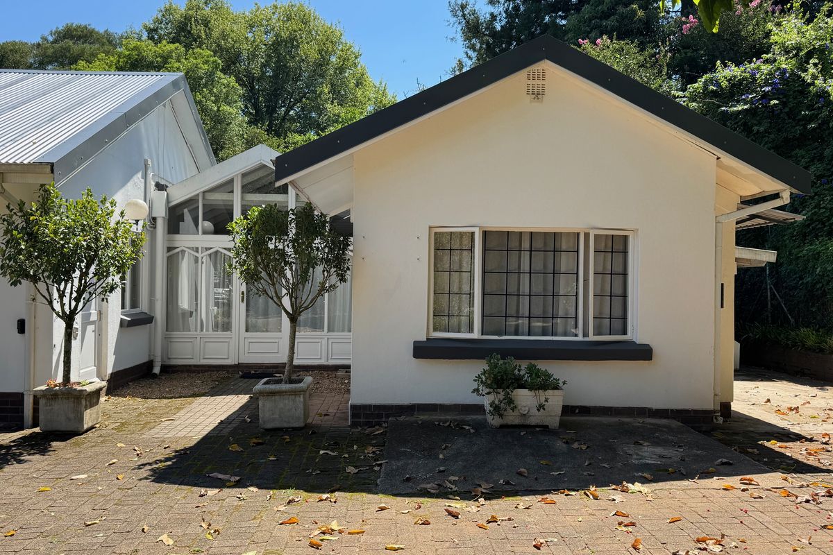 Peaceful central Hilton workspace on Cedara Road, steps from cafes and amenities, featuring a light-filled tiled conservatory opening to a paved courtyard — includes a single carport.