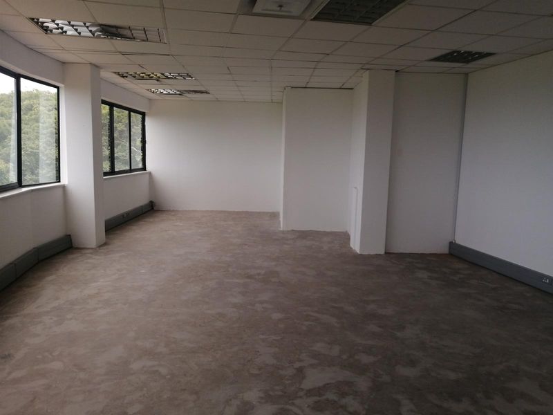 200m² fitout-ready office for rent in La Lucia Ridge, includes 10 secure parking bays, sea views, and generator coverage.