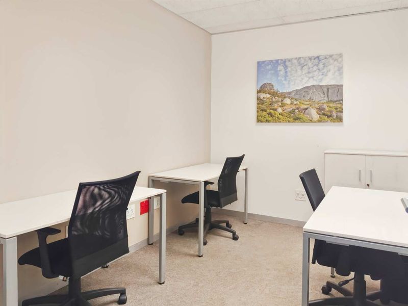Work confidently in Rustenburg’s business hub, near Magaliesberg, with light-filled floor-to-ceiling windows, a furnished office for three and 75 sqm shared workspace.