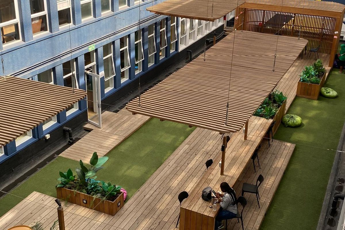 Enjoy vibrant city-centre workspace with abundant natural light and courtyard views, minutes from the train and MyCiTi — features an all-weather atrium with braai and no loadshedding.