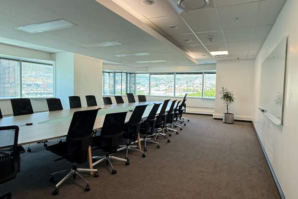 Prime Foreshore workspace in Cape Town’s landmark The Towers — panoramic city, mountain and harbour views, bright fitted offices with boardrooms and option to whitebox for custom layout.