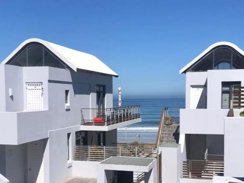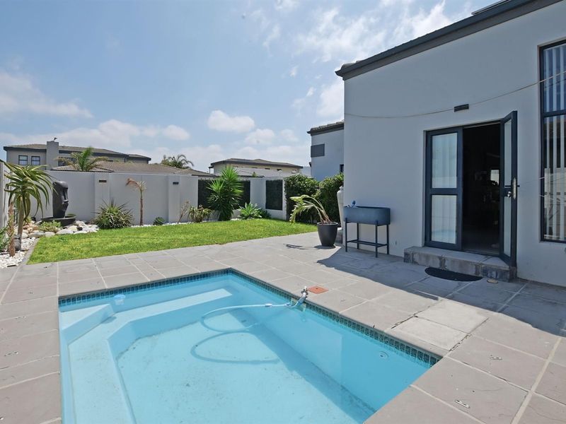Relaxed beachside family living in Sandown’s La Val Blue Estate, close to Bloubergstrand and transport; three-level townhouse with low-maintenance garden and built-in braai, four bedrooms.