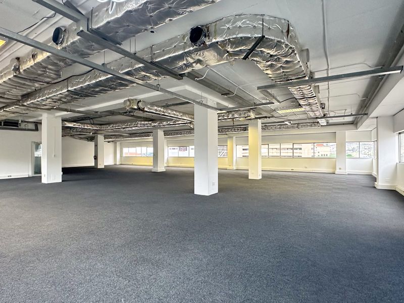 Central, connected workspace on Riebeeck Street offering panoramic city views and plug-and-play, fully fitted offices plus boardroom. 1,000m² with four bathrooms and secure parking option.