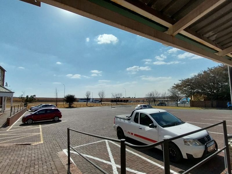 100m² office space in Trichardt with open-plan area, kitchen, bathroom, and ample parking. Monthly cost includes water and lights.