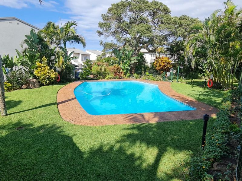 Furnished townhouse in Umhlanga: 2 bedrooms, 2 bathrooms, 1 garage, pool access, water and WiFi included.