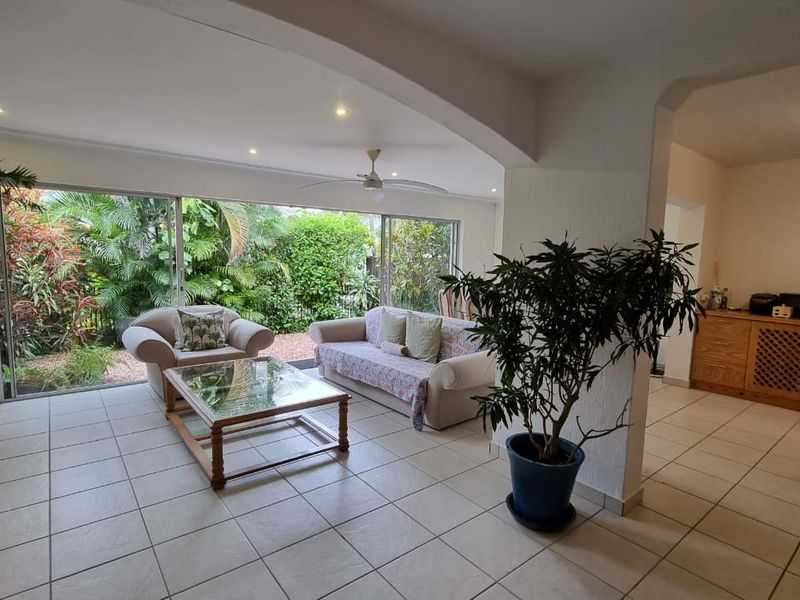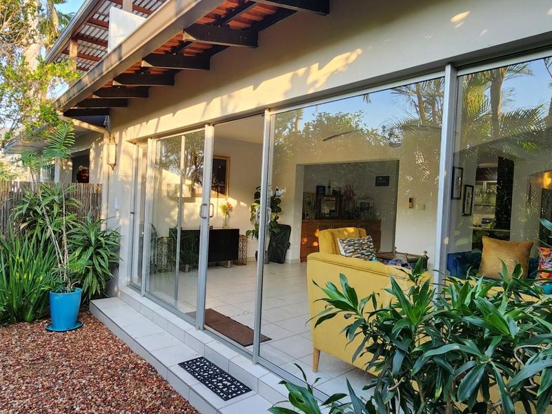 Beachside living in Umhlanga near The Village, La Lucia Mall and Gateway, with direct beach access, covered patios and private garden; four bedrooms, 3.5 baths, double garage.