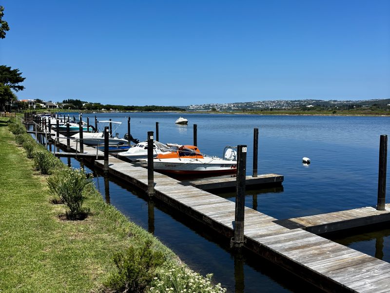 Riverside living on Keurbooms River — relaxed outdoor entertaining in a private enclosed garden with braai, communal pool access, and direct riverbank walks; two-bedroom, one-bath with two parking bays.