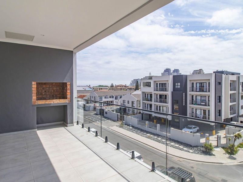 Enjoy coastal living minutes from Blouberg Beach, cafés and shops — open-plan apartment with modern kitchen and a 13.6 m² balcony with built-in braai; two bedrooms, two bathrooms.